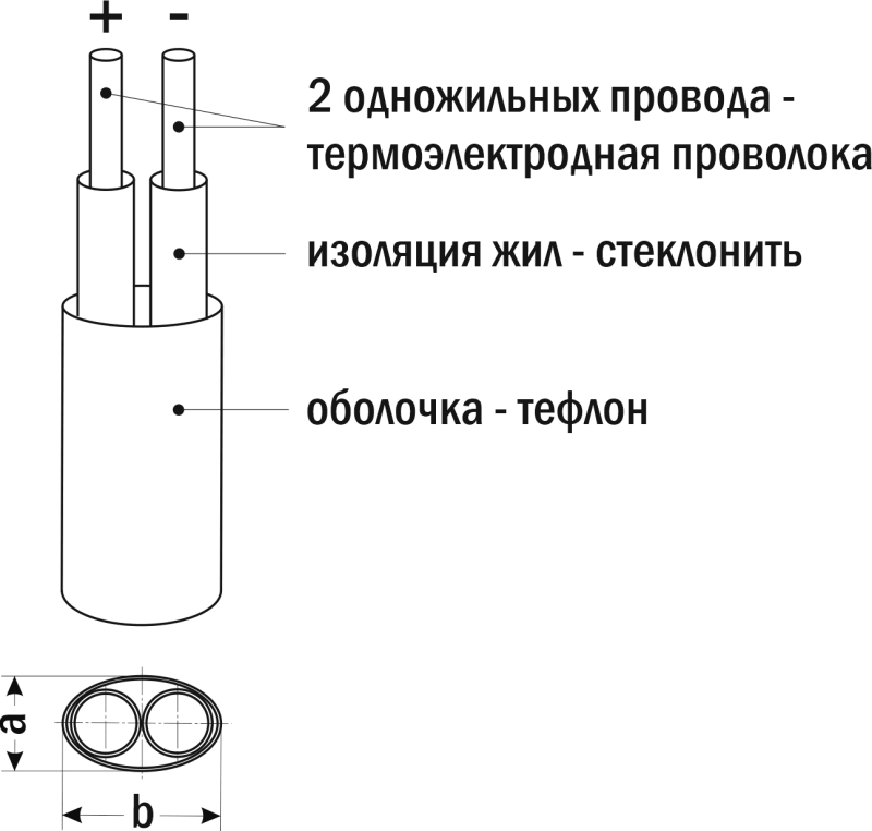 Компенсационный (термопарный) провод предназначен для соединения термопары с измерительным прибором и для изготовления термопар. Для подключения провода к портативными измерительными приборами используются термопарные разъемы, например, ТВ