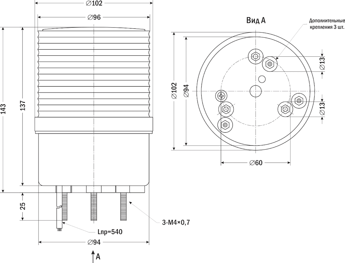 | Габаритные размеры | ∅102×143 мм