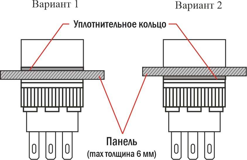 - Монтаж в плоские панели толщиной до 6 мм, фиксация стопорной гайкой